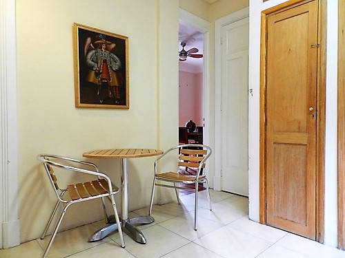 Urban Heritage offers  an Art Deco state of the art three bedroom apartment. Totally restored and fully furnished and equipped with exquisite taste in the heart of Heritage Quarters amidst cafes, restaurants, bars and museums, just steps away from Solis Theatre. This unique apartment consists of three fully furnished and equipped bedrooms, two bathrooms and a home office. Fully renovated kitchen with a breakfast area, living and dining room opens out to a ample balcony with fantastic views. The heart pine floors, wooden carpentry, high ceilings make this apartment unique. Air conditioner, ceiling fans in bedrooms.