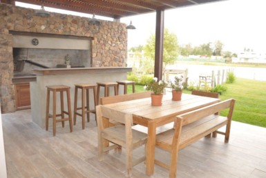 Los pisos cuentan con una combinación de madera, porcelanato/mármol y aberturas de vidrio amplios, aportando calidez y sofisticación a cada ambiente. Uno de los principales atractivos es su espectacular patio exterior, equipada con una barbacoa y mesada pileta exterior, el escenario perfecto para el entretenimiento y reuniones al aire libre.