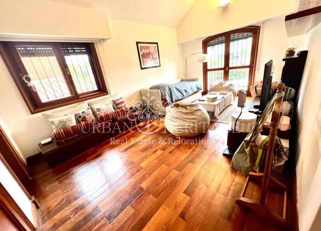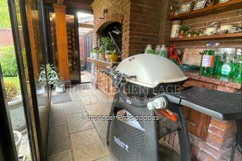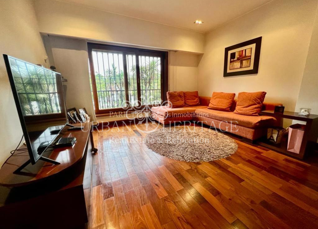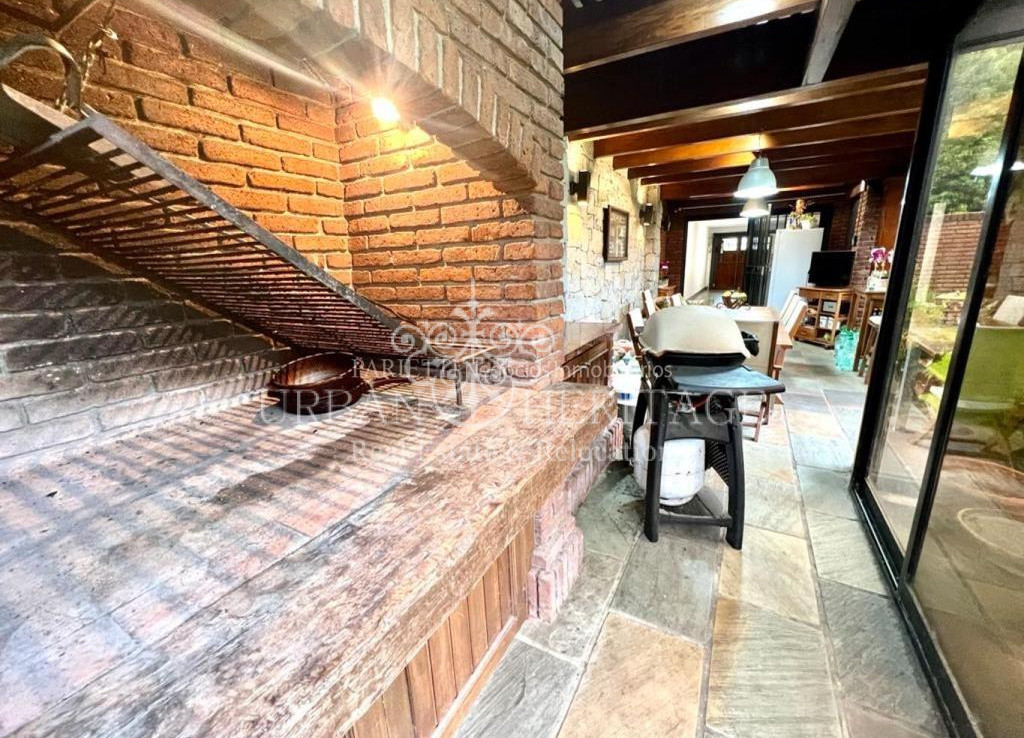 La planta baja consta de planta libre con puertas corredizas que brinda privacidad acorde a las necesidades del dia. Tiene un gran pallier para recibir su familia y amigos. El living con estufa y comedor tiene ventanles amplios de ambos lados, con puertas corrediza hacia un jardin de invierno que se abre hacia el jardin. El area intima de la casa consta de un estar intimo. La cocina es super moderna con materiales nobles, gran cantidad de mesadas, y un comedor intimo diario.  La casa es de excelente calidad de construcción, carpinteria de madera, pisos y escalera  de lapacho, mamposteria de ladrillo en un inmejorable estado. La barbacoa tiene una gran parilla y ventanales  corredizas hacia el jardin con mucho luz. esta conectada con el garage para dos autos.