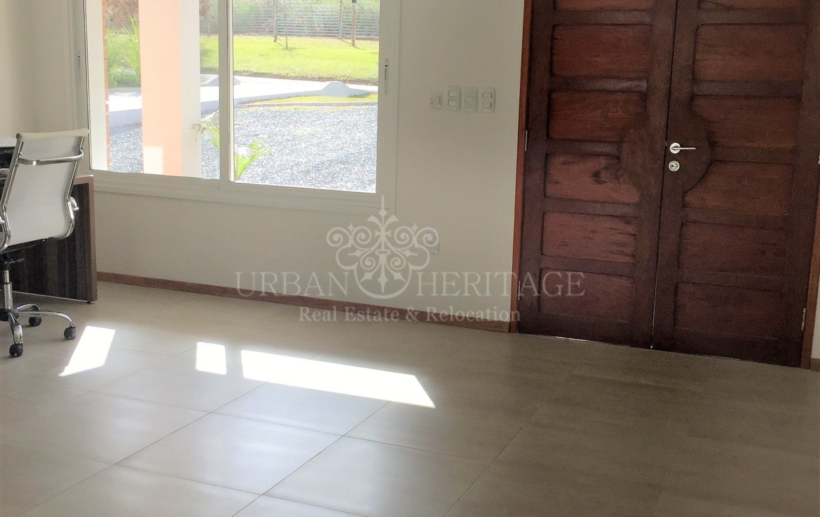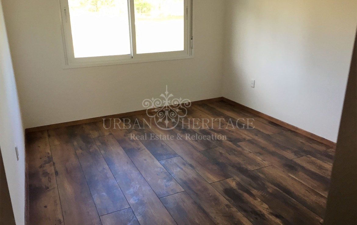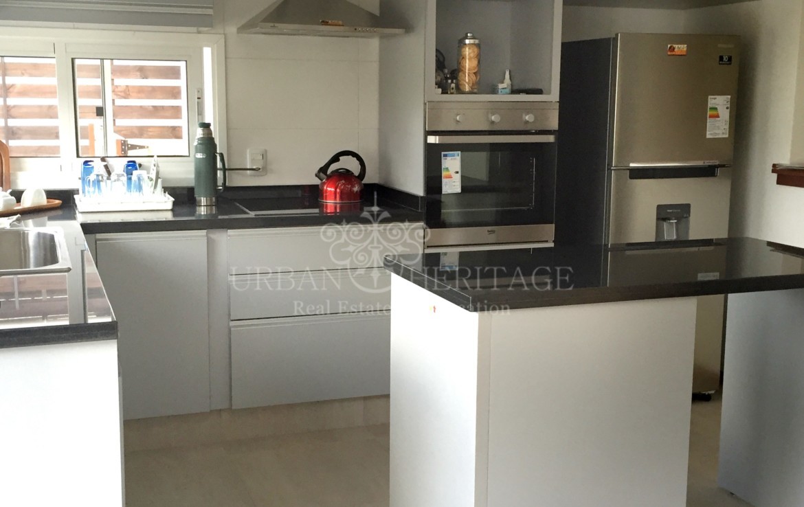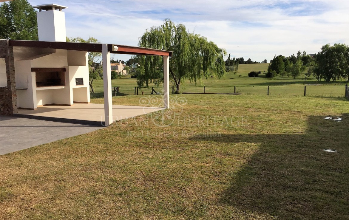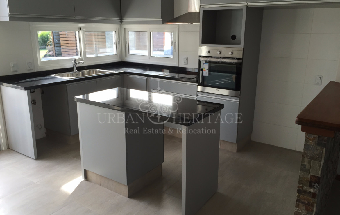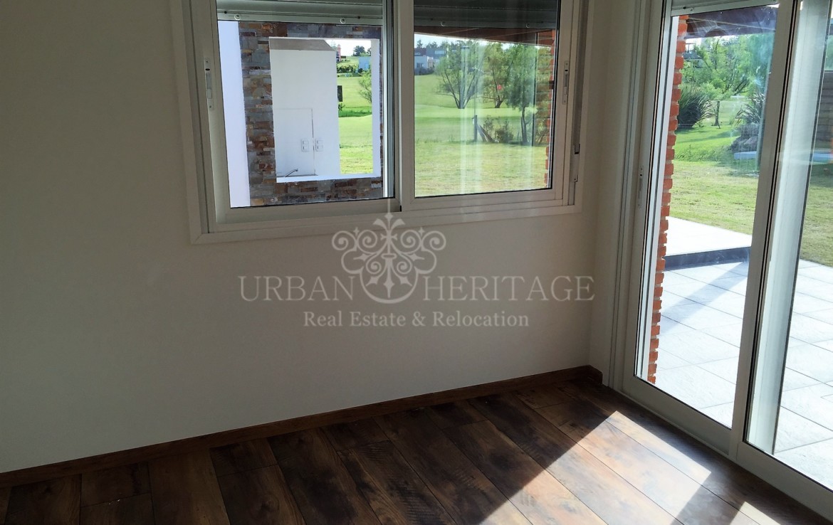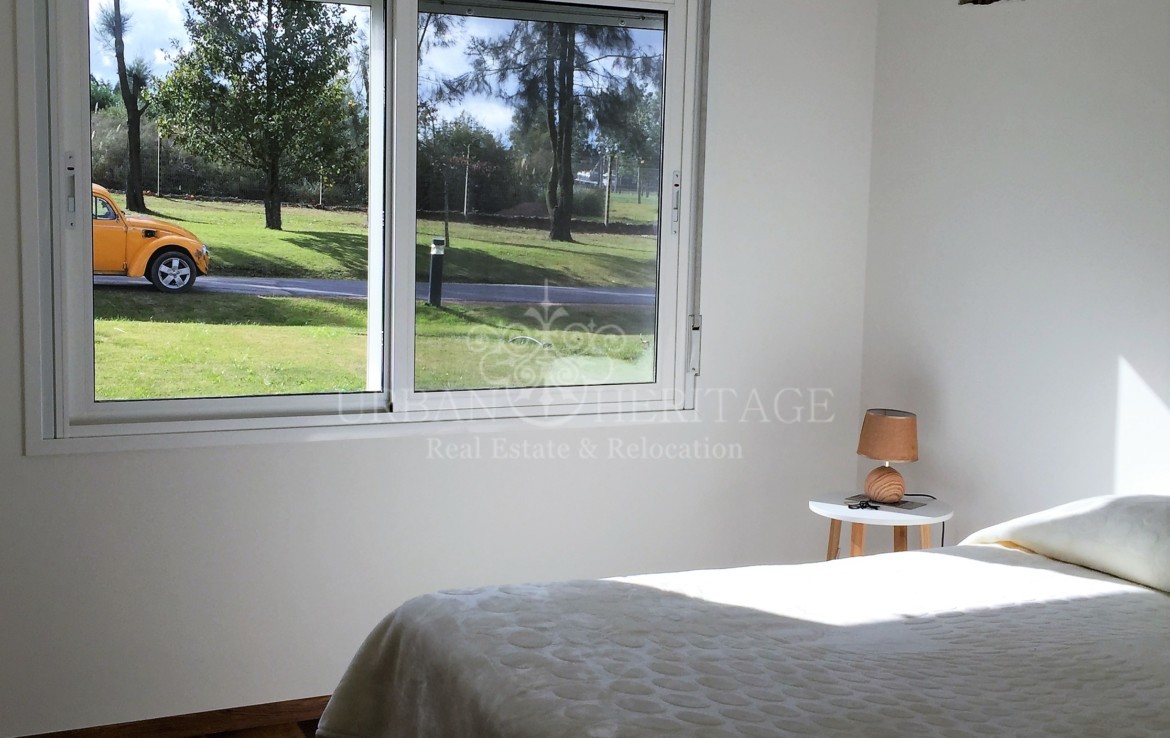 LINEA BLANCA: oven, stove and hood, washing machine, refrigerator, microwave and heating, 3 bedrooms (2 suites with dressing rooms and 1 with closet) + desk or room service, 3 bathrooms, Johnson kitchen integrated with stone bar and lapacho, floors of portobello porcelain from Bosch. LINEA BLANCA: oven, stove and hood, washing machine, refrigerator, microwave and water heater. ROOFED BARBECUE WITH GRILL AND BREAD OVEN, laundry. Individual slab heating sectorized. Irrigation system. Forecast for air conditioning and alarm. Excellent materials: Bosch rock line bathroom appliances, German Bosch Haro bedroom floors, all the LED interior luminaire, cedar carpentry and lapacho frames on interior and exterior doors, Uruguayan aluminum carpentry with DVH and roller blinds in All the bedrooms. It also has double ticholo wall with air chamber and high density foam and brick cladding, ceiling with air chamber and glass wool for condensation on the eaves, American tile and wooden braces